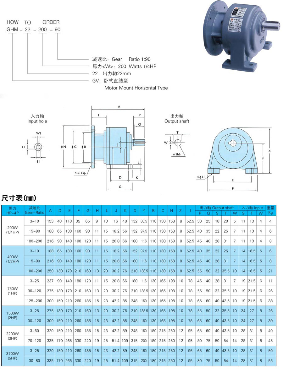 萬鑫GH-28減速機型號:GH18(輸出軸直徑)-100(電機功率)-20(減速比)S(S代表三相,A代表單相) 全國熱(re)線(xian): 13924335044 |