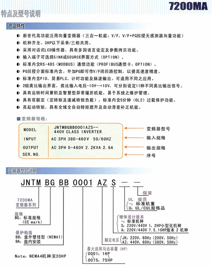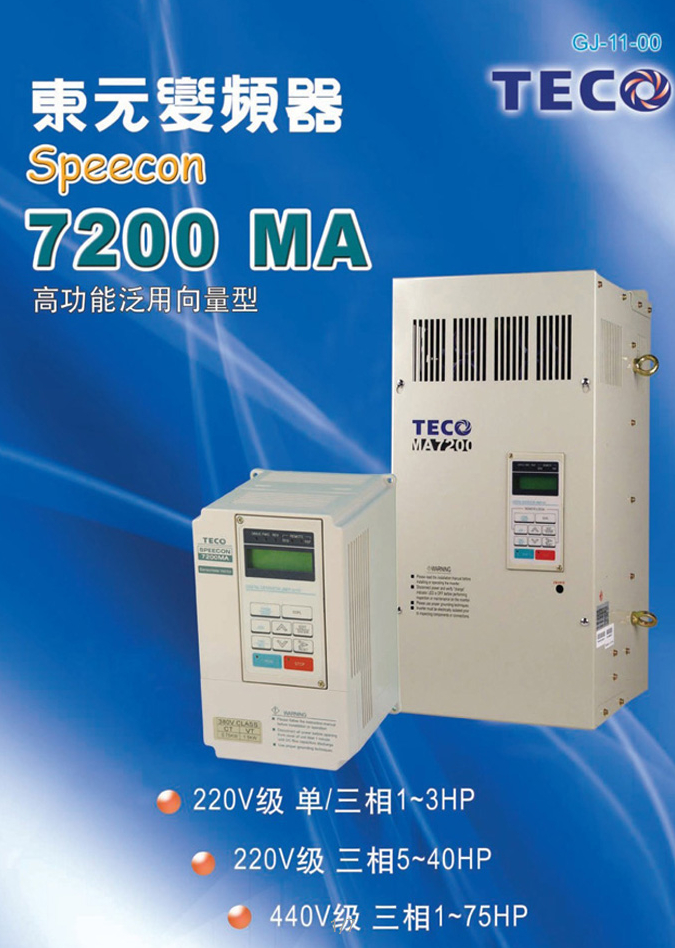 TECO東元變頻器7200MA1、東元變頻器7200MA特色:高功能泛用向量型 全國熱(re)線: 13924335044 |