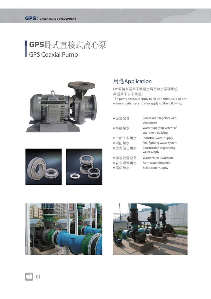 川源GPS臥式直接離心泵陸上型系列 用途: GPS 泵特別適用于暖通空調冷熱水循環系統亦適用于以下用途: