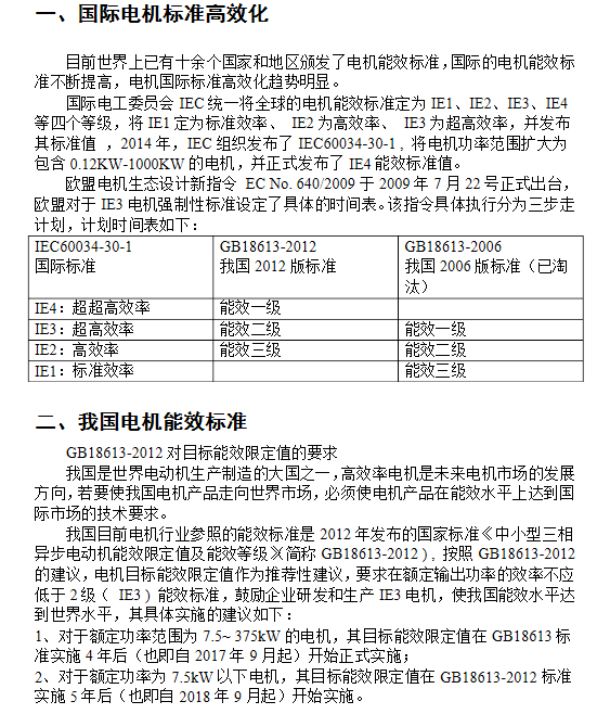 國際電機能效標準和中國電機能效標準的